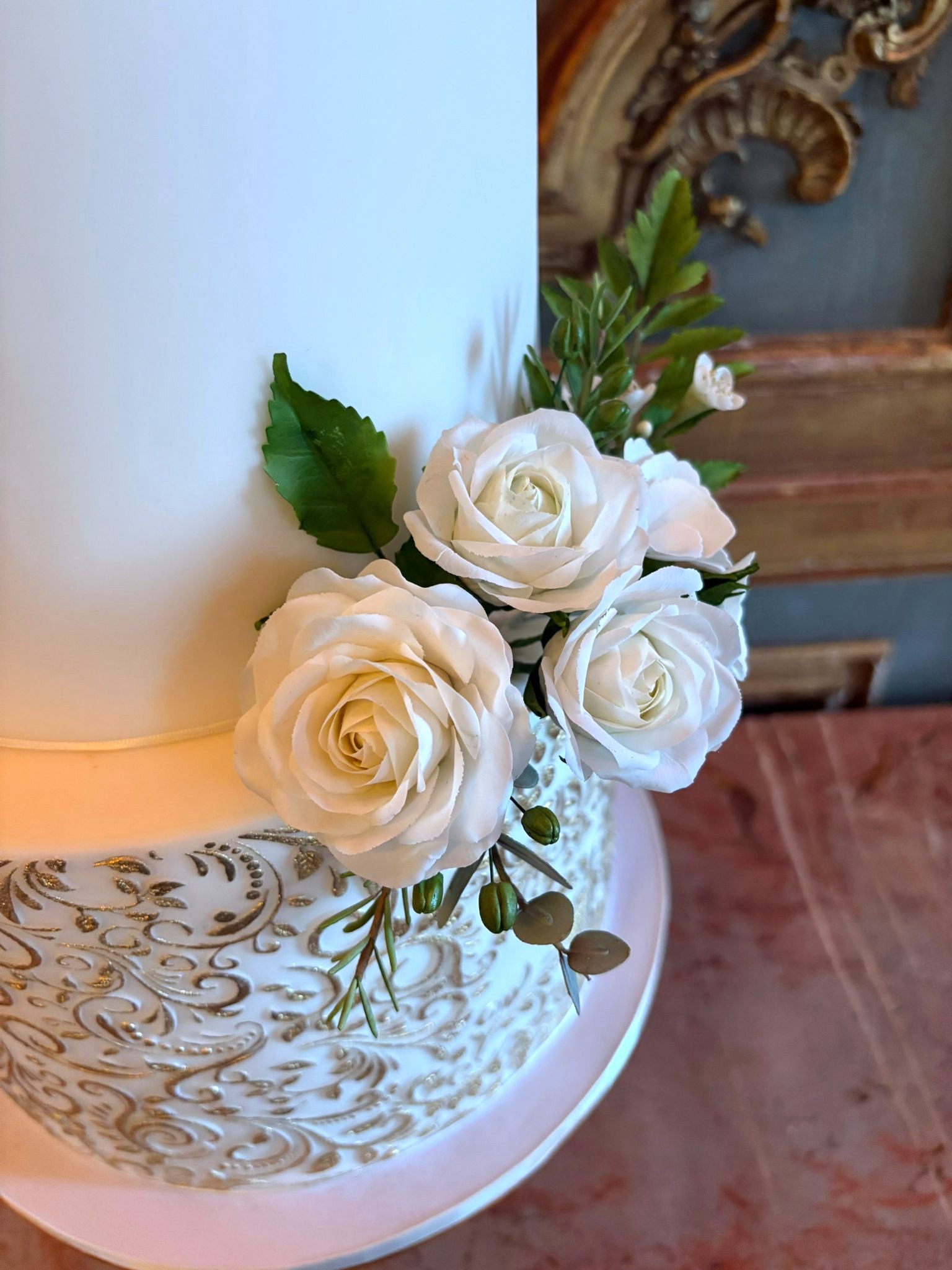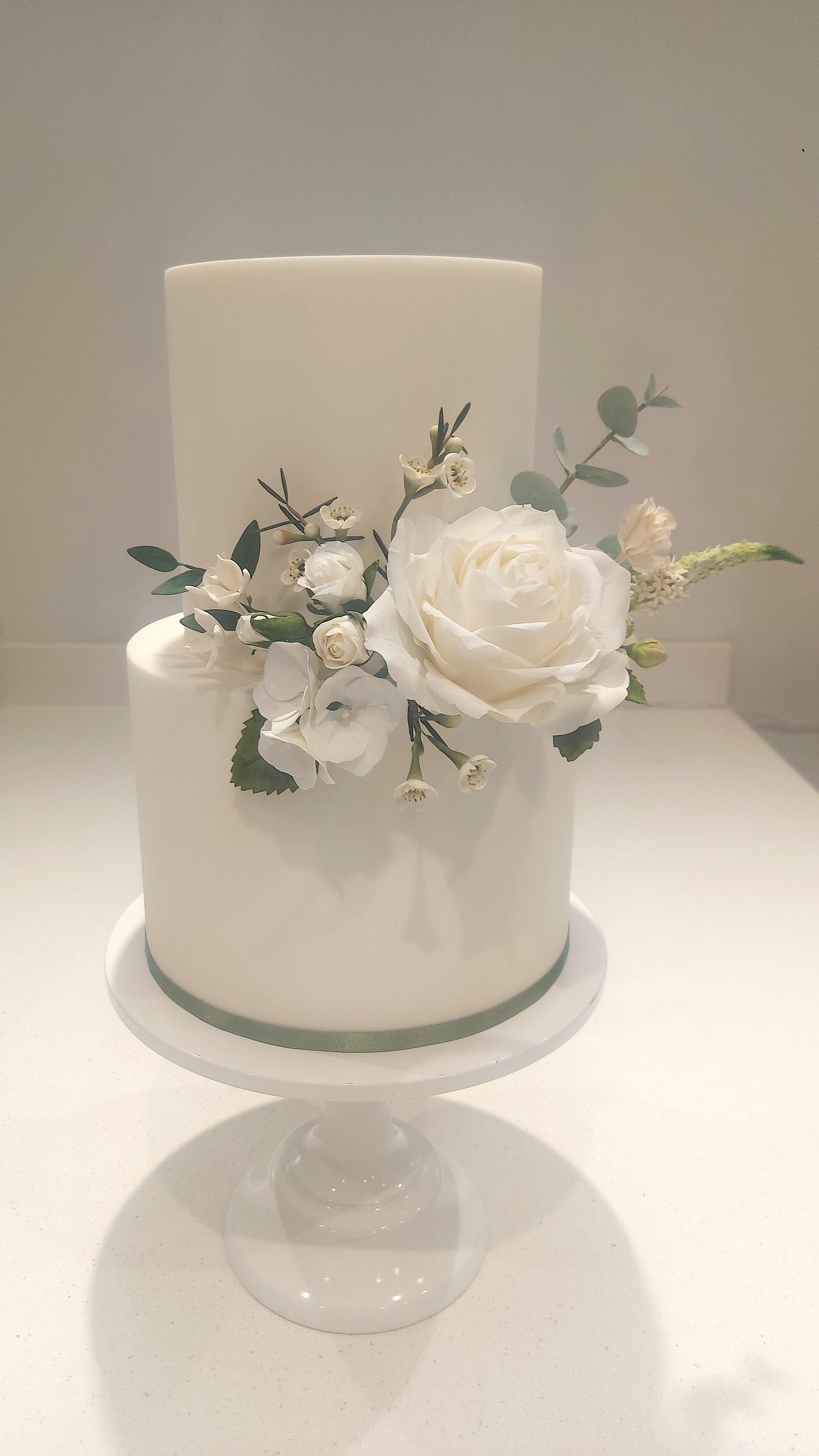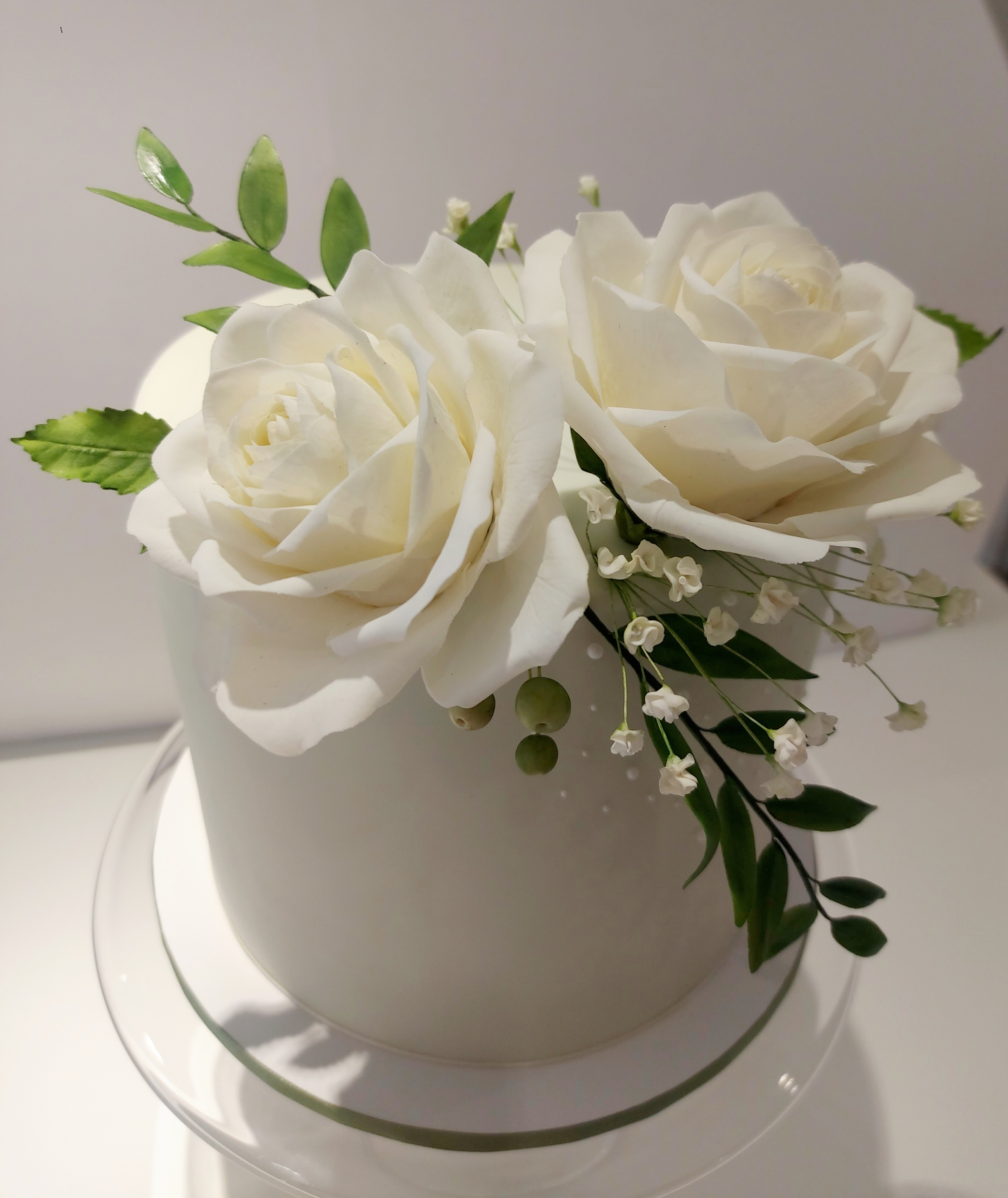 Signature handcrafted sugar flowers of your choice can be created to decorate your wedding cake. If you prefer fresh flowers, I am happy to liaise with your florist to arrange a selection of flowers to appear on your wedding cake.