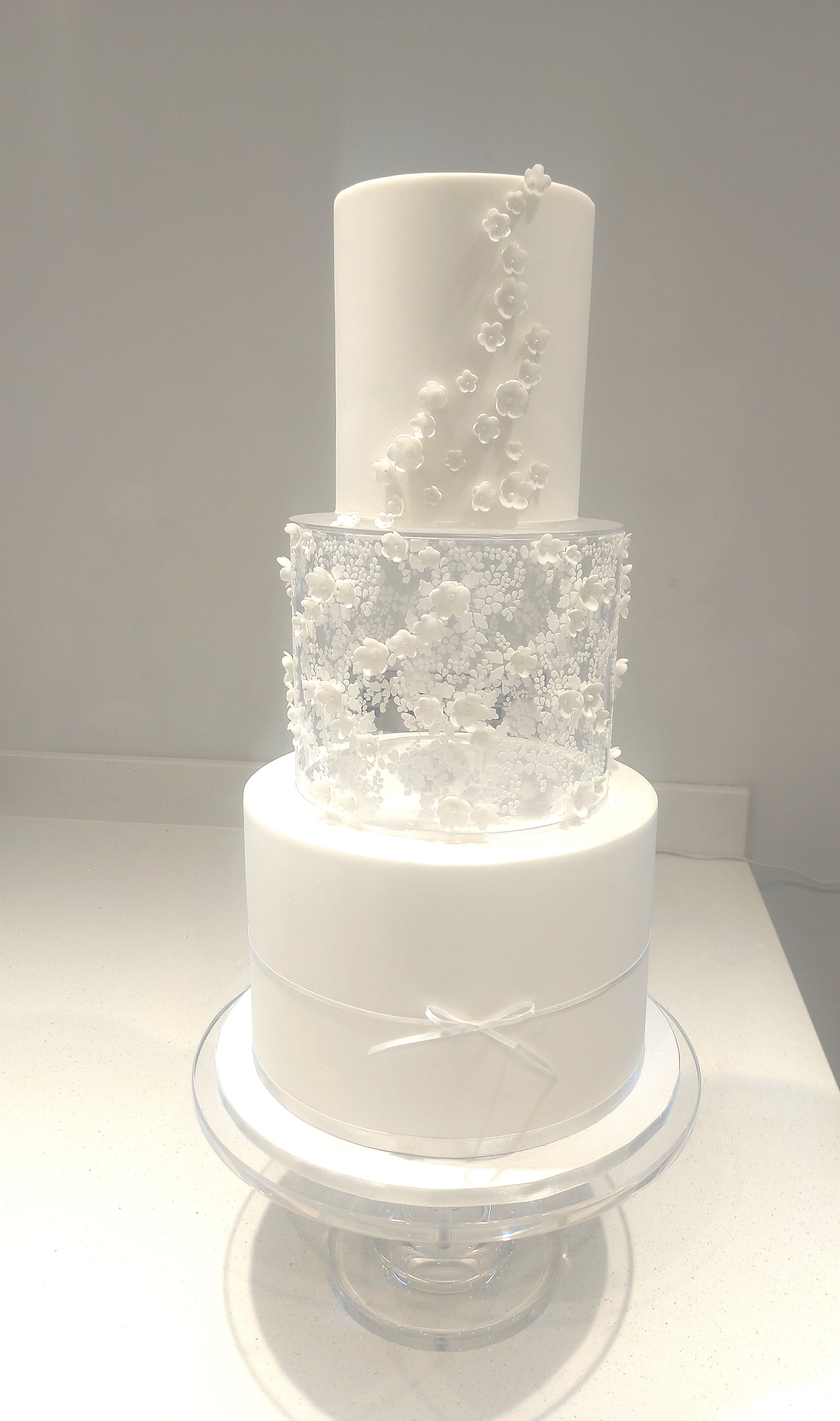 Each cake is freshly baked to order using the finest of ingredients. All fondant cakes are covered in a layer of Belgian white chocolate ganache before fondant is applied to the cake. This enables me to create beautiful sharp edges and a clean finish.